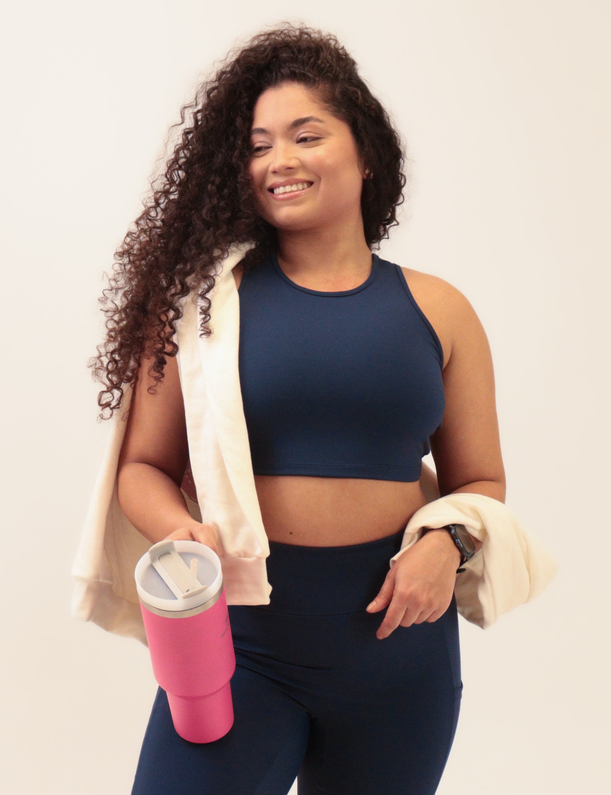 Oferece suporte para atividades de médio impacto, com modelagem cropped que valoriza o corpo. Perfeito para treinos ou looks casuais, reflete o novo começo da Aventia com sofisticação.